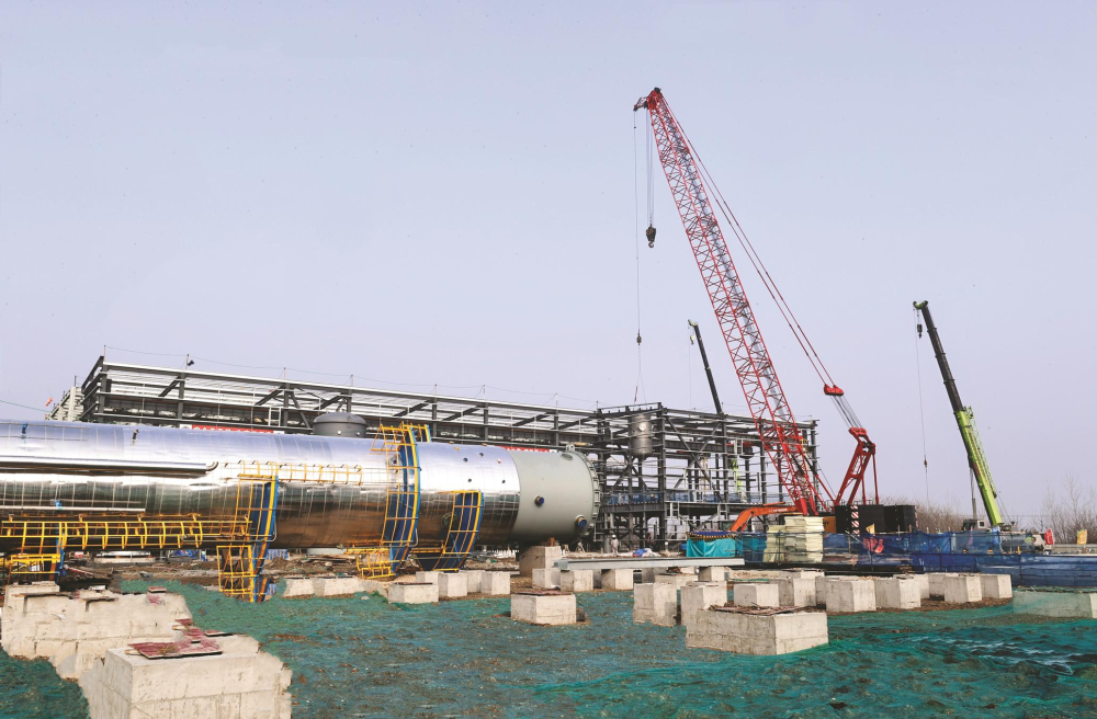 蓝天白云下,占地千余亩的同德科创PBAT一体化项目在原平经济技术开发区摆下战场,快速推进。 PBAT是目前生物降解塑料研究中非常活跃和市场应用最好降解材料之一。“我们这个项目工艺路线以电石、甲醇为主要原料,简单来讲就是从一铲煤、一块石头到两匹布——一匹塑料布、一匹氨纶布,使用废弃后可被微生物完全分解,最终全部转化为二氧化碳和水。”原平经济技术开发区同德科创项目负责人介绍说,建成后将是全国最大的可降解塑料生产基地,目前项目整体进度完成近90%,即将投产,可新增产值约50亿元。 据了解,同德科创PBAT一体化项目总投资36亿元,项目总占地面积1088亩。项目包括两个12万吨/年BDO系列装置,总能力24万吨/年,一套6万吨/年PBAT装置及全厂配套公用工程及辅助装置。 进入二季度以来,华塑股份抢抓项目施工“黄金期”,向着早达产、早盈利、早增效目标快步迈进。 截至6月6日,该公司PBAT项目总体进度完成86%;设备总数1336台,到货率96.5%,安装率85%;土建主体工程基本结束,正按计划抓紧收尾,为今年9月份项目投料试车打牢基础。 据了解,华塑股份产品结构调整改造一体化项目年产12万吨生物可降解新材料利用公司预留用地,占地面积约392亩, 采用先进的改良炔醛法工艺,在现有项目的基础上改造建设16万吨/年甲醛装置 (以 55wt%甲醛计)、10万吨/年BDO装置、12万吨/年PBAT装置、配套公用工程及辅助设施。