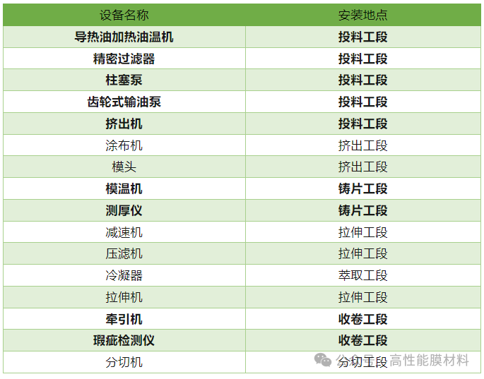 湿法和干法生产工艺中所用设备很多都相同,现以湿法工艺为例,列举隔膜生产设备。