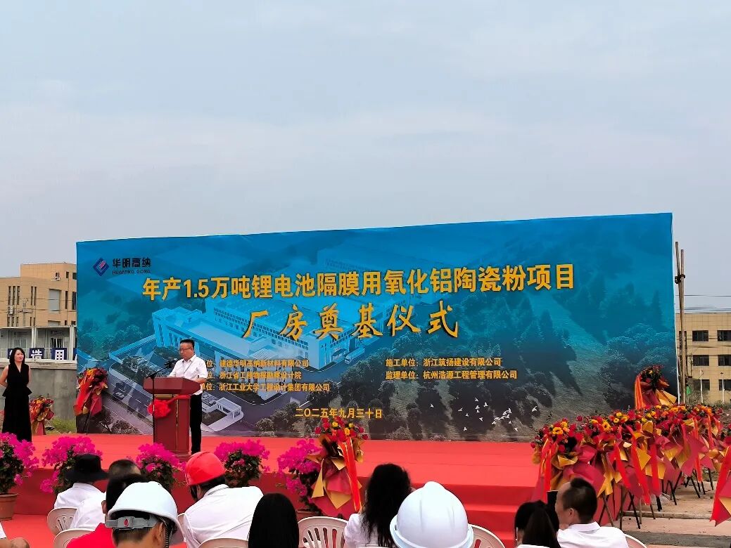 9月30日,高纳实业旗下建德华明高纳新材料有限公司建设的“年产1.5万吨锂电池隔膜用氧化铝陶瓷粉项目”正式举行厂房奠基仪式。